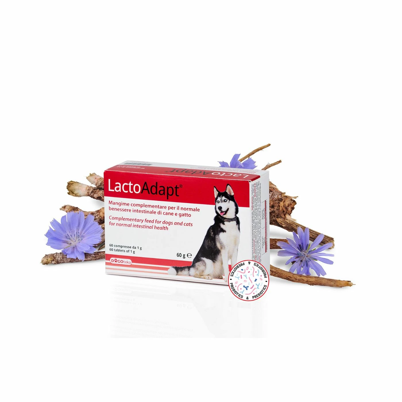 Dogoteka LactoAdapt® 2023 per Cani e Gatti è un mangime complementare per cani e gatti, indicato per il normale benessere intestinale, composto da pre e probiotici.