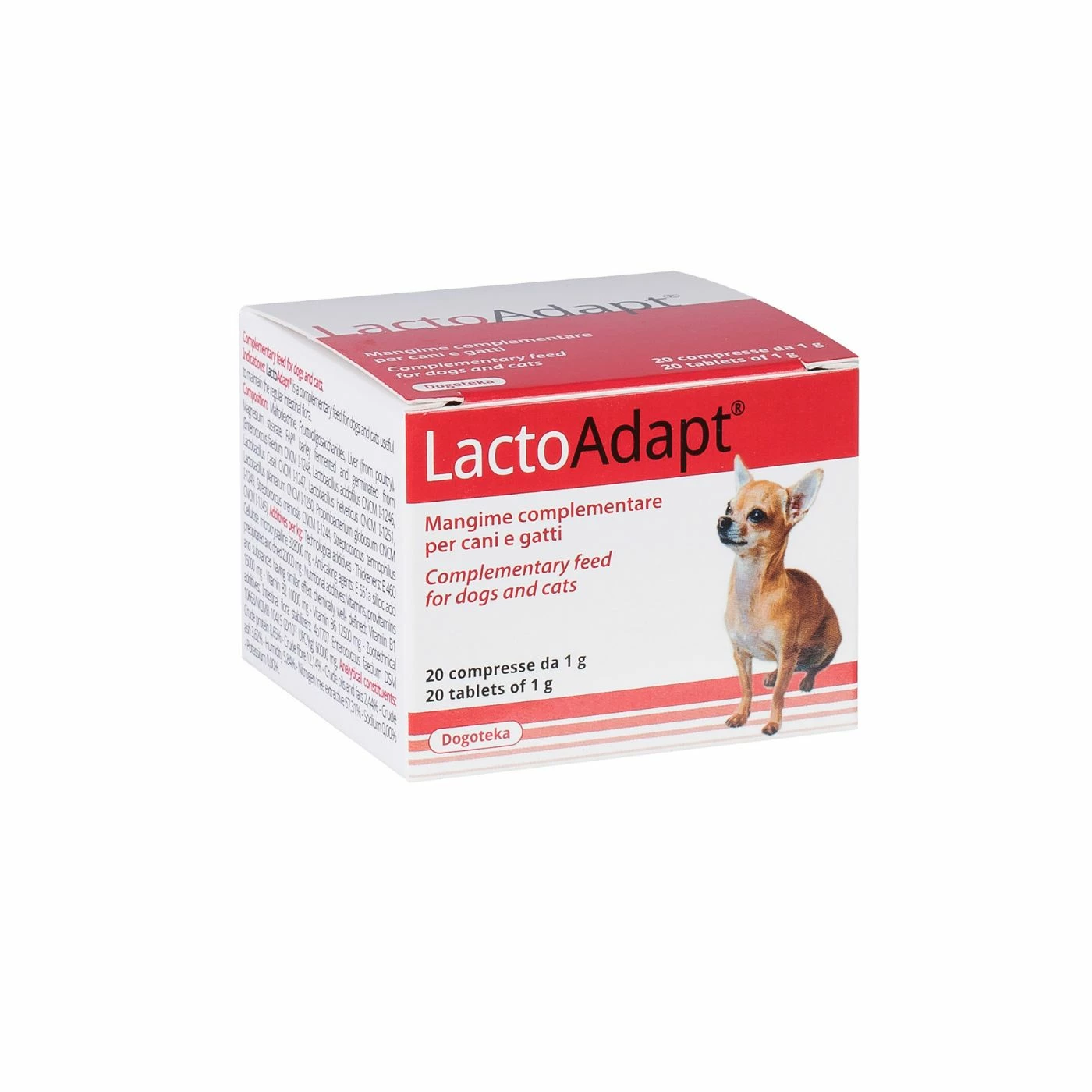 Lacto Adapt Integratore per Cani e Gatti Dogoteka è un mangime complementare per cani e gatti indicato a favorire l’equilibrio della flora microbica intestinale messa a dura prova a volte da disturbi acuti dell’assorbimento intestinale, durante le diarree acute e i periodi di convalescenza successivi.