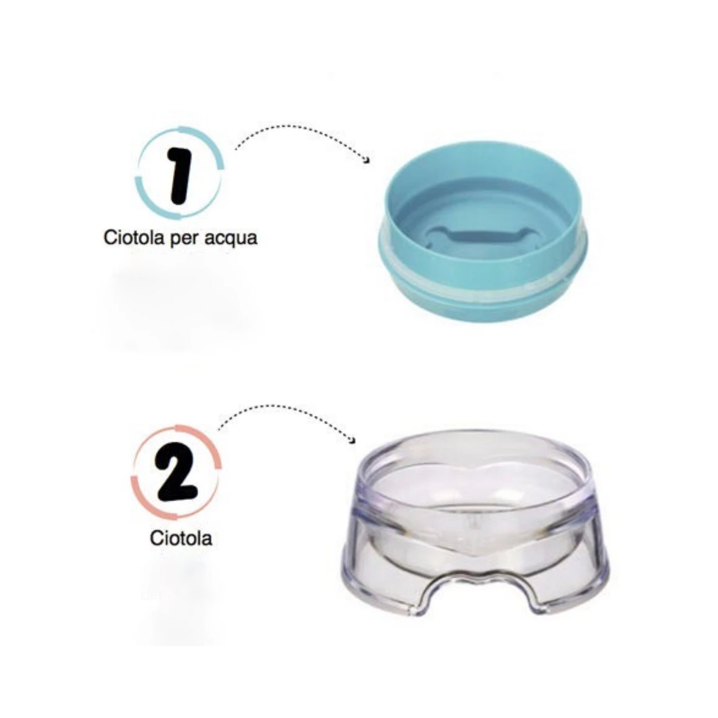 Il set si compone di due comode ciotole: una per l’acqua e una per la pappa.