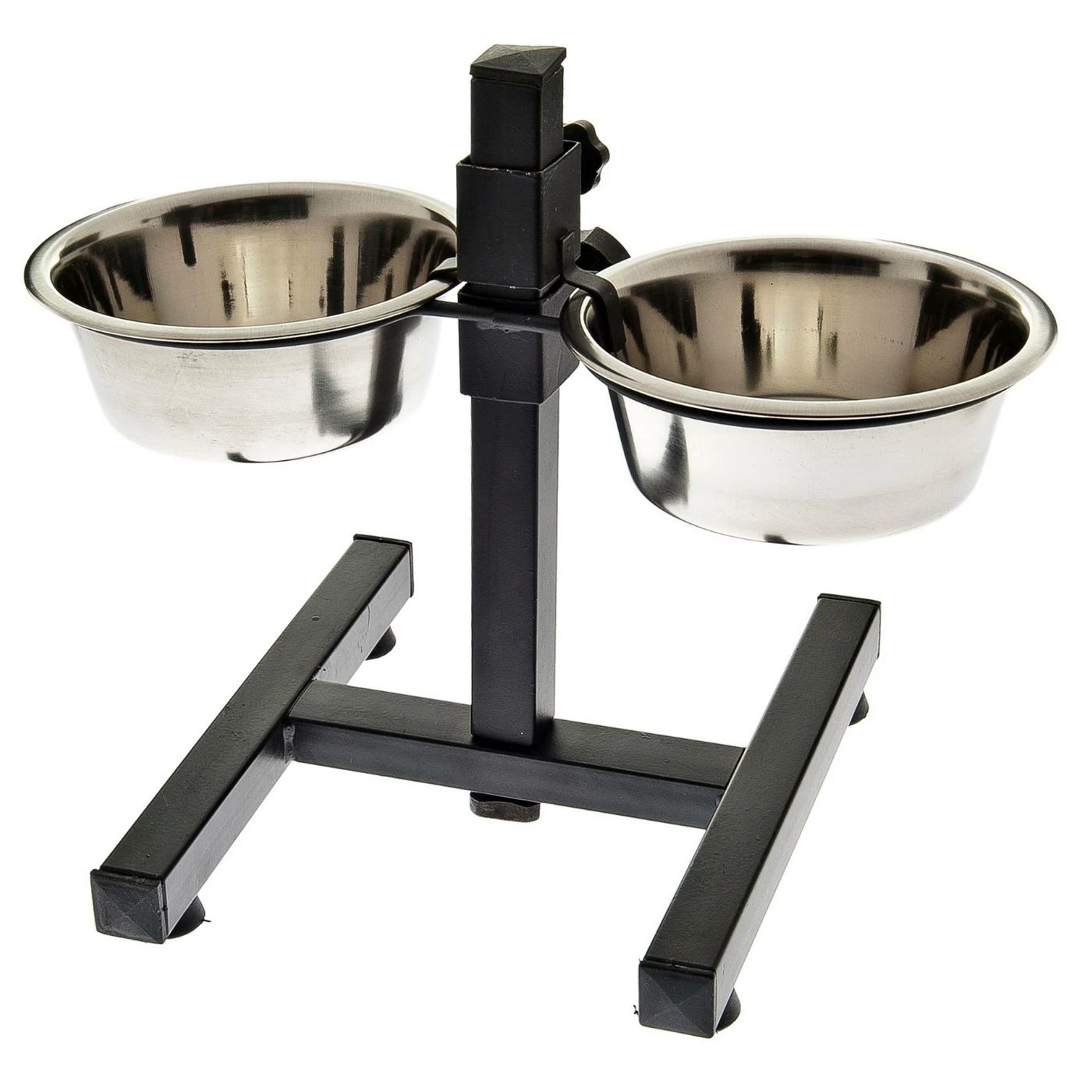 Ferribiella Supporto con Ciotole Medio per Cani è un robusto porta-ciotole in acciaio, regolabile in altezza, che permette ai cani di taglia piccola e media di adottare una posizione corretta durante il pasto favorendo la digestione.