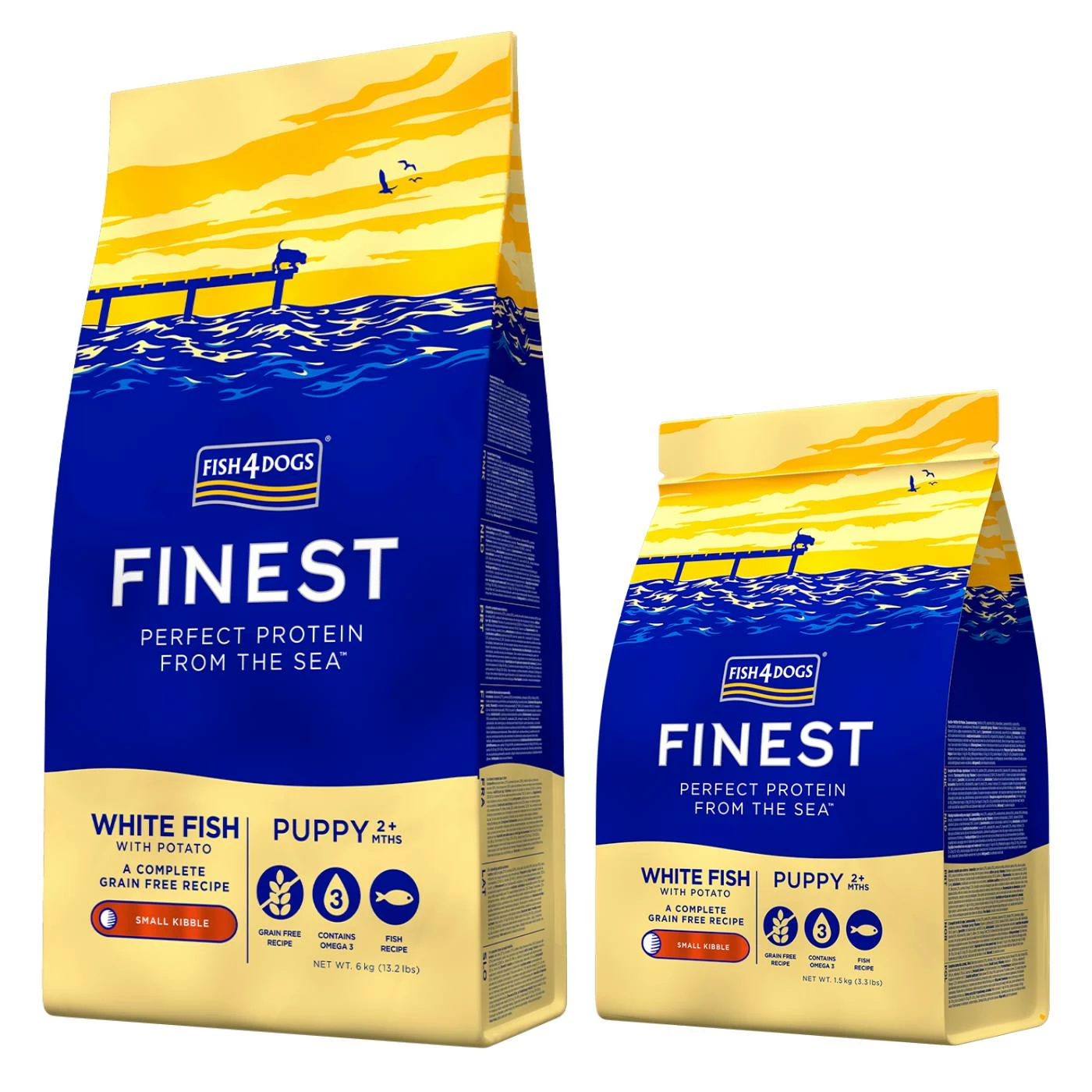 Fish4Dogs Finest Puppy Small Pesce Bianco è un mangime per cani naturale e completo altamente proteico con pesce bianco oceanico ideale per Cuccioli in crescita di Piccola e Media Taglia.