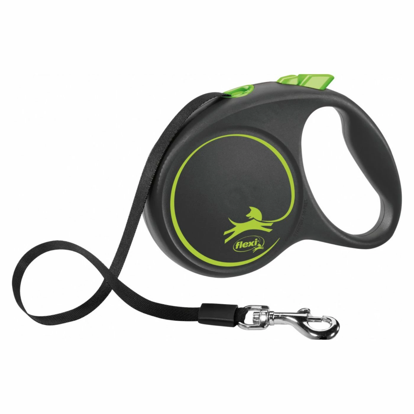 Flexi Black Design in Fettuccia L 5mt fino a 50kg è un guinzaglio avvolgibile pratico e sicuro.