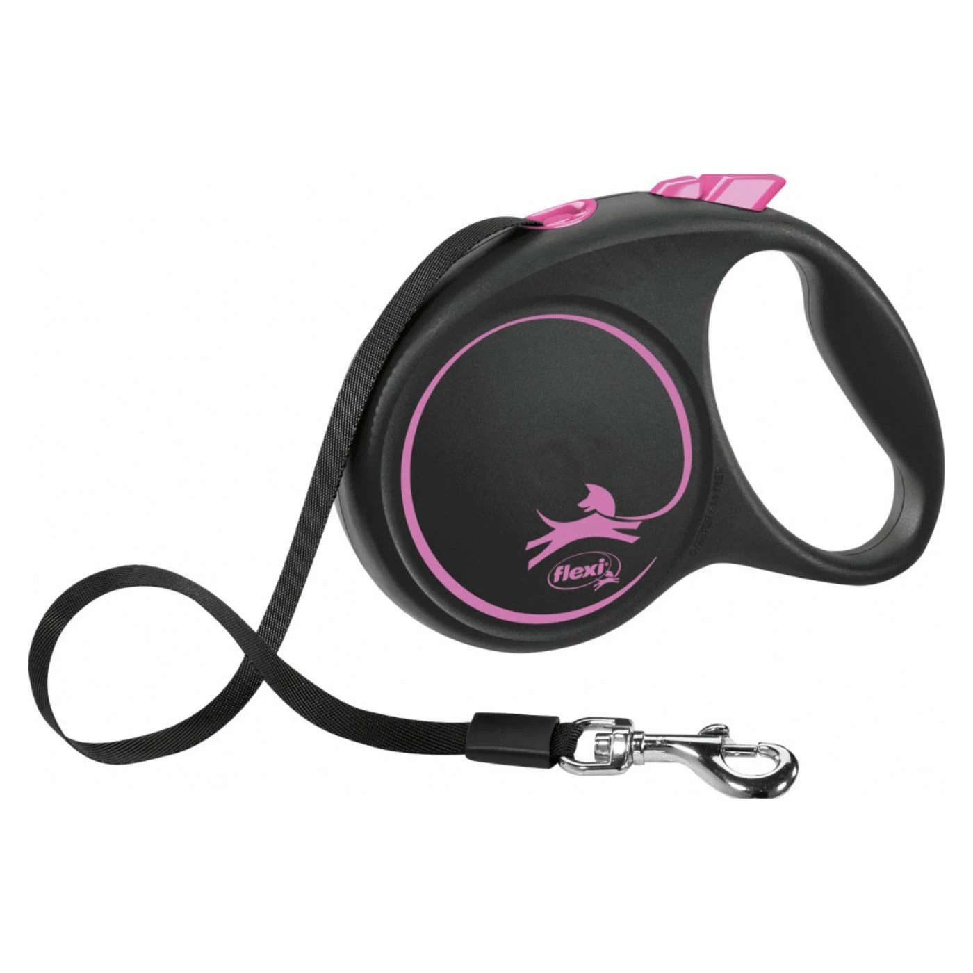 Flexi Guinzaglio Black Design Fettuccia M 5m fino a 25Kg è un guinzaglio avvolgibile pratico e sicuro.