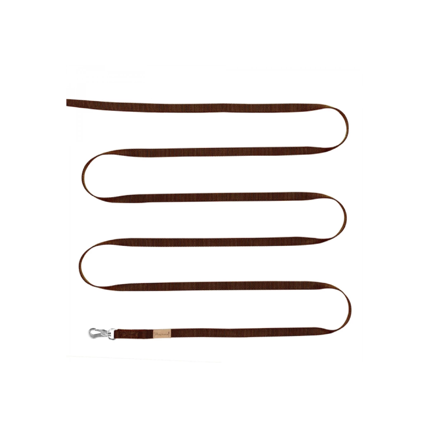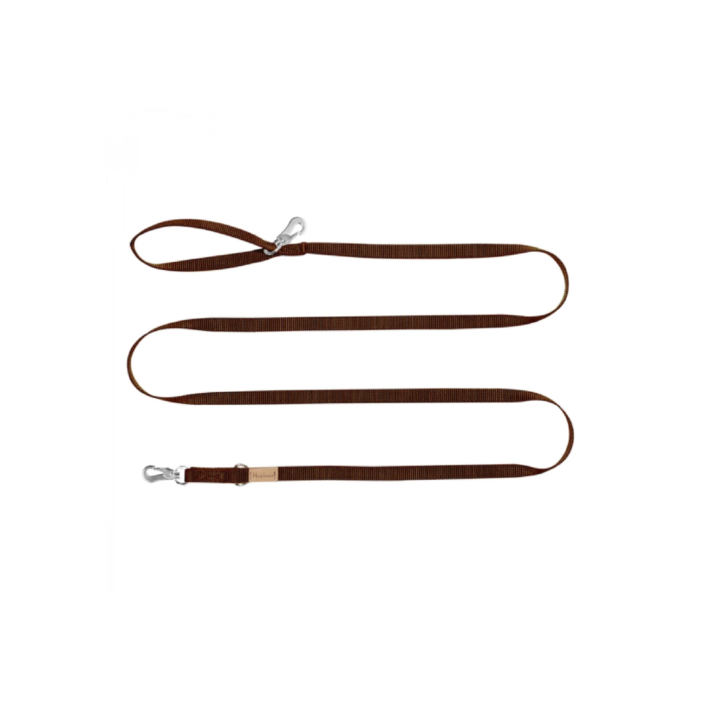 Guinzaglio in Nylon Chocolate Haqihana di lunghezza variabile (da 1,5 a 10 metri) prodotto con nastro in poliammide ad alta tenacità, tinto in pasta e larghezza variabile (15mm o 20mm) in base alla misura.