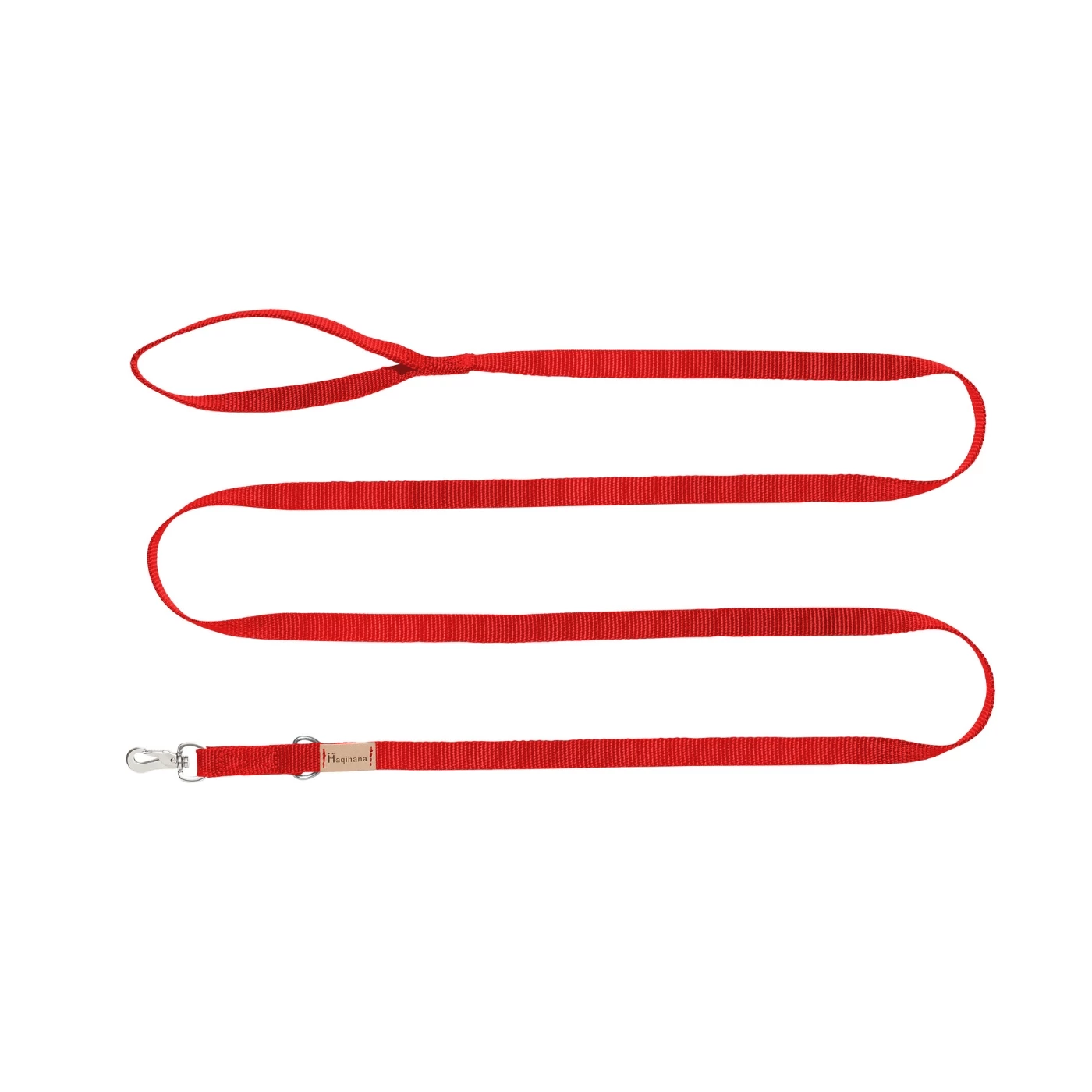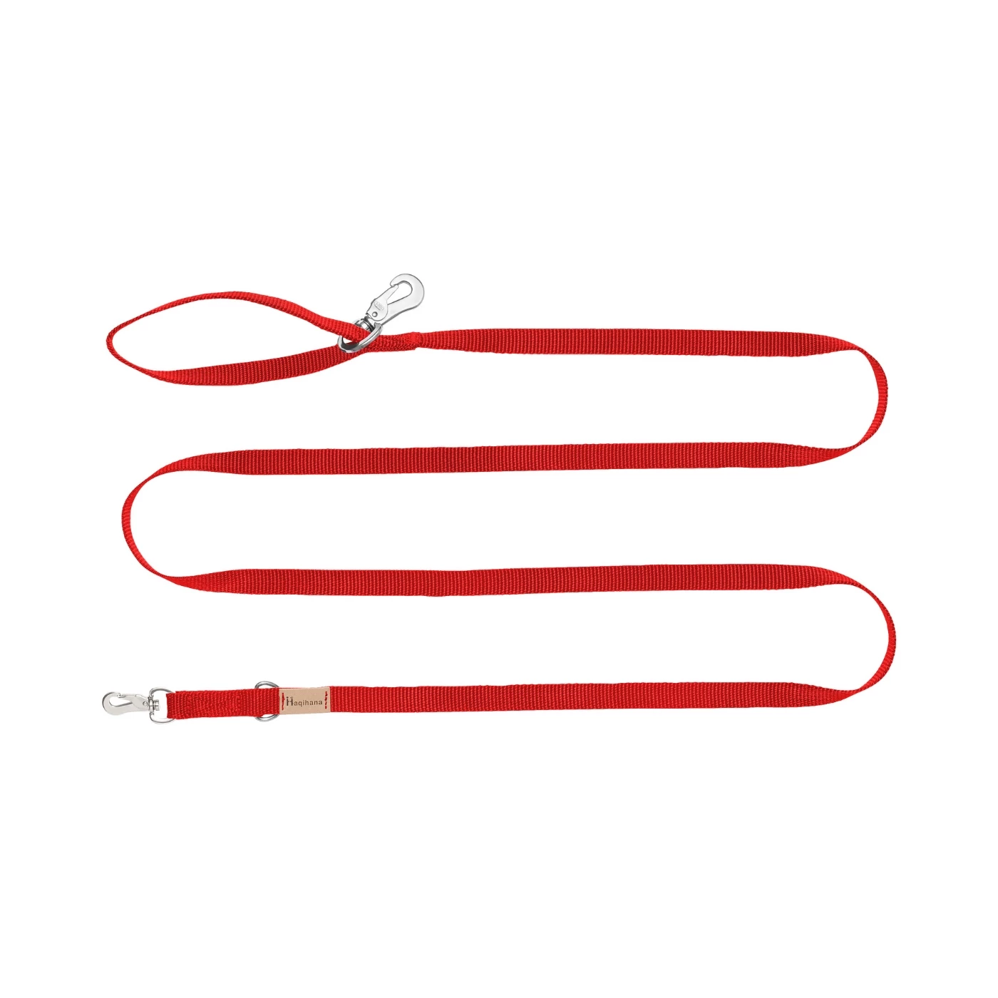 Guinzaglio in Nylon Rosso Haqihana di lunghezza variabile (da 1,5 a 10 metri) prodotto con nastro in poliammide ad alta tenacità, tinto in pasta e larghezza variabile (15mm o 20mm) in base alla misura.