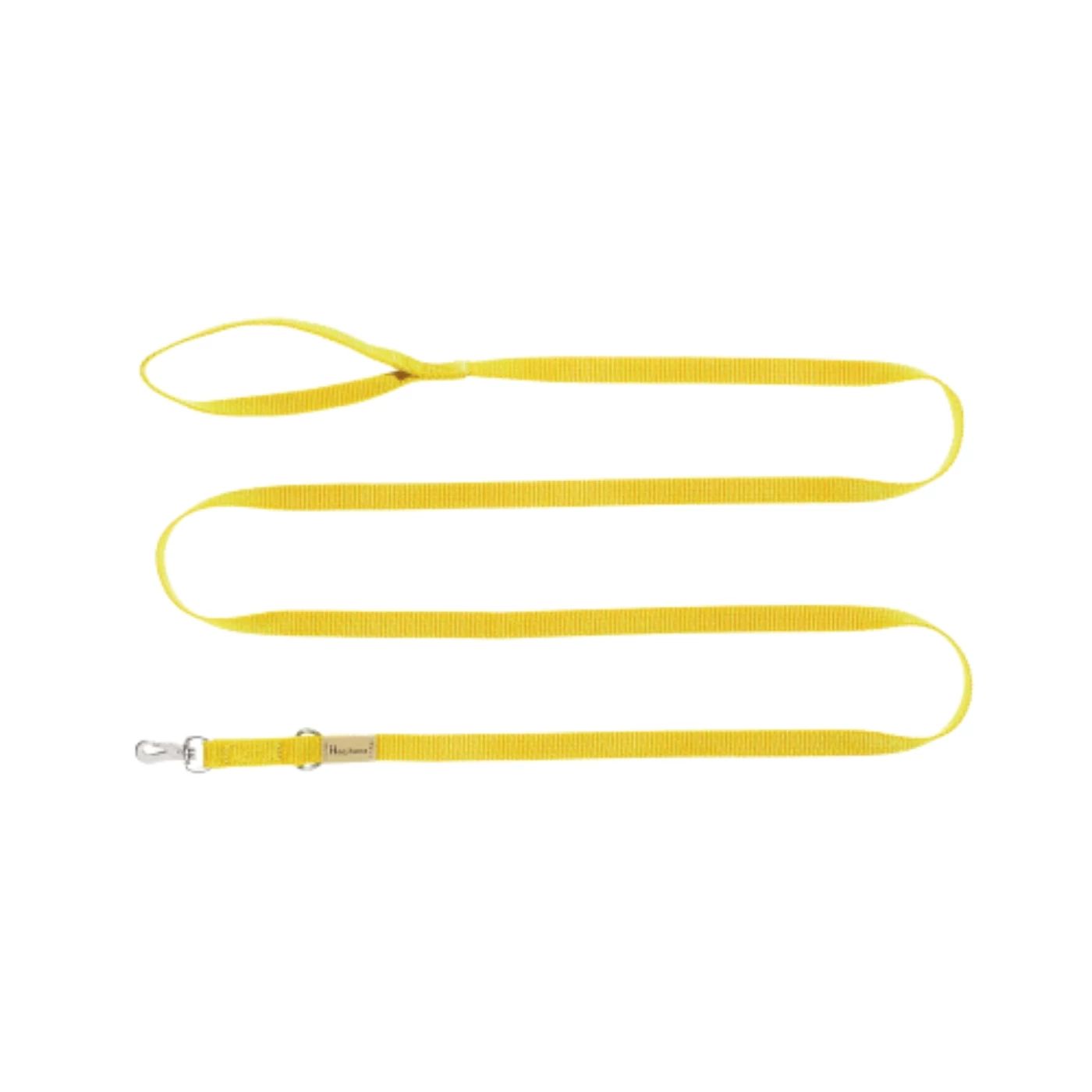 Haqihana Guinzaglio in Nylon Yellow di lunghezza variabile (da 1,5 a 10 metri) prodotto con nastro in poliammide ad alta tenacità, tinto in pasta e larghezza variabile (15mm o 20mm) in base alla misura.