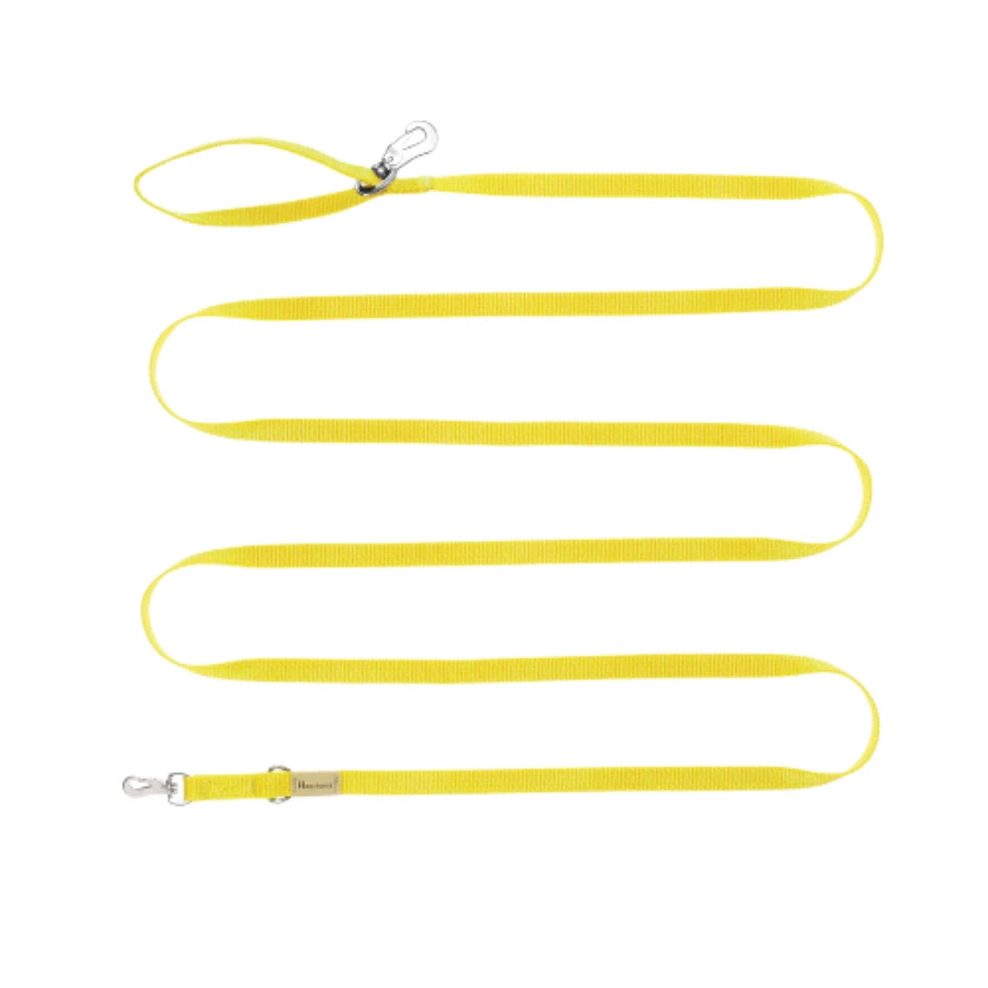 Haqihana Guinzaglio in Nylon Yellow di lunghezza variabile (da 1,5 a 10 metri) prodotto con nastro in poliammide ad alta tenacità, tinto in pasta e larghezza variabile (15mm o 20mm) in base alla misura.