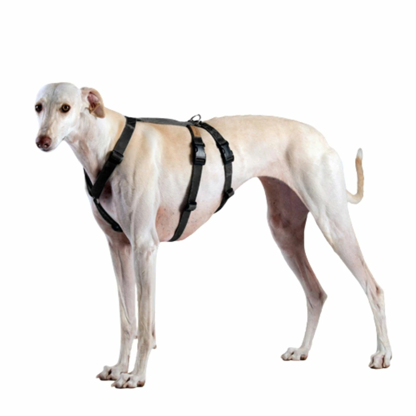La pettorina a “Doppia H” è disegnata espressamente per garantire una migliore vestibilità a Greyhound, Galgo e cani similari che presentano un torace profondo e levrettato.