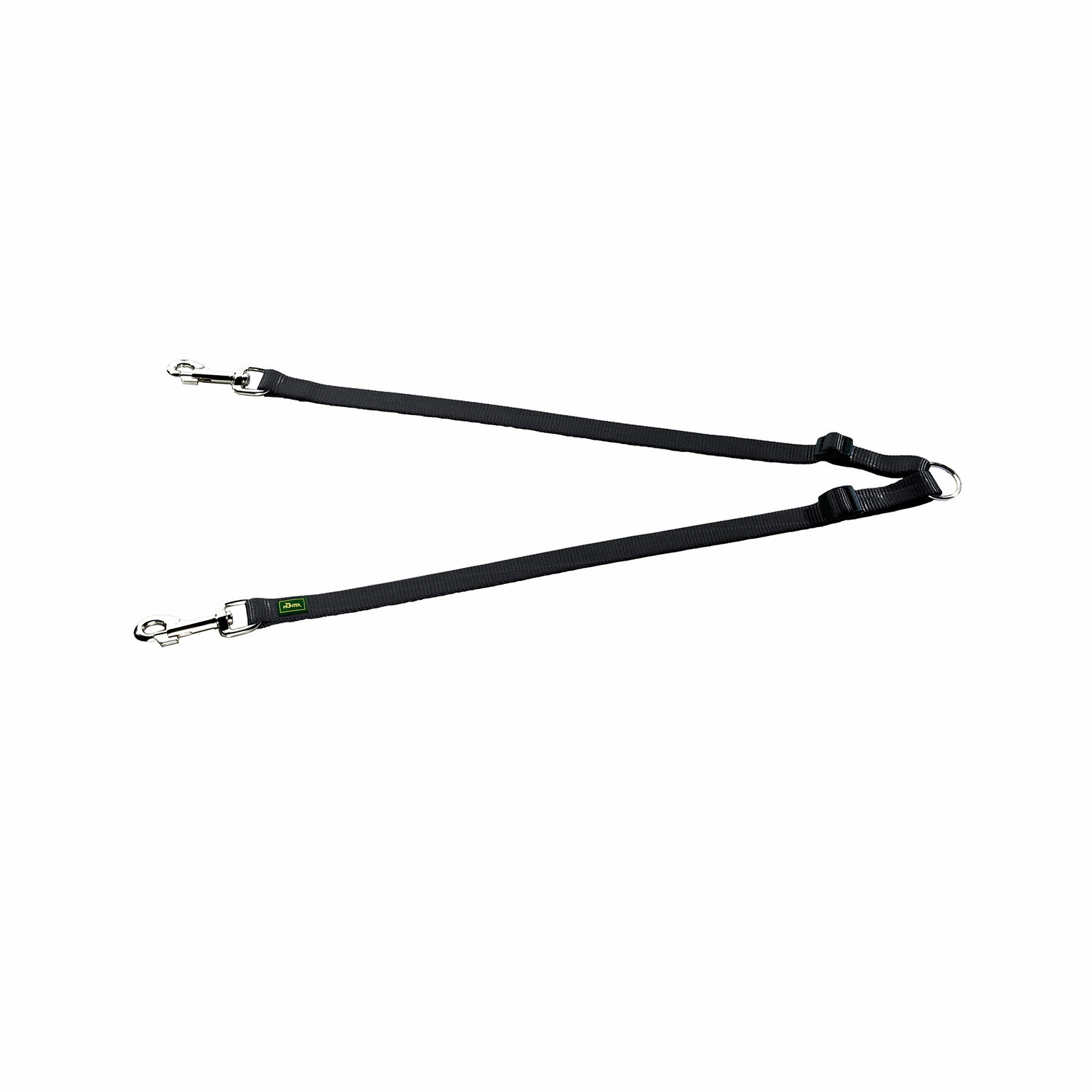 Sdoppiatore in Nylon per Cani Hunter è realizzato in robusto tessuto di nylon antistrappo e composto da due fili corti regolabili uniti da un anello metallico.