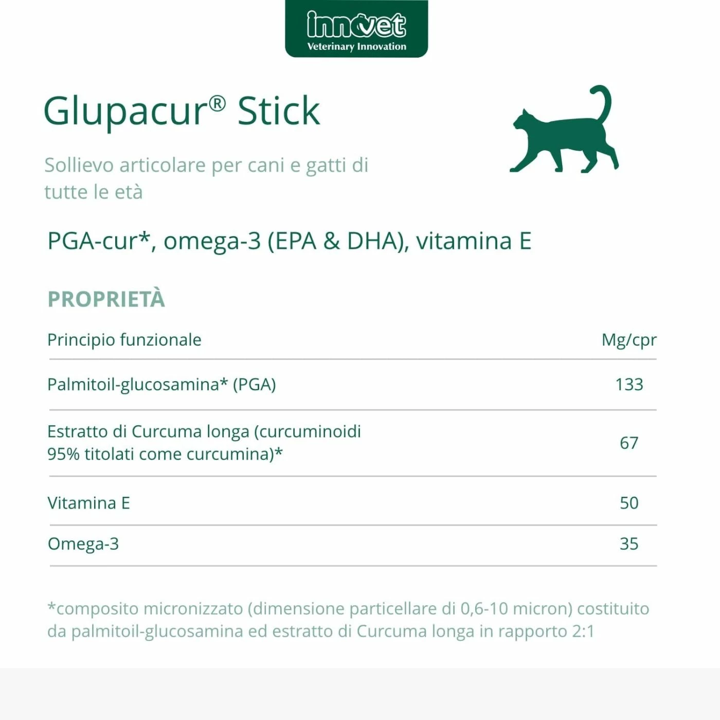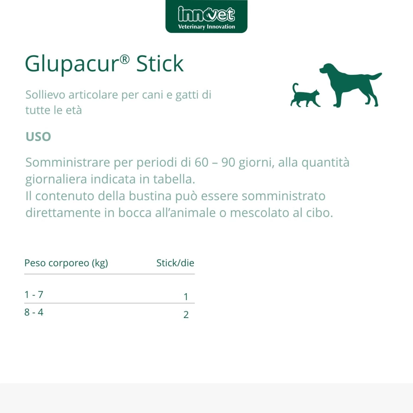Innovet Glupacur® Stick Integratore Articolare per Cani e Gatti di Tutte le Età 30 Stick Orali, sollievo articolare per cani e gatti di tutte le età.