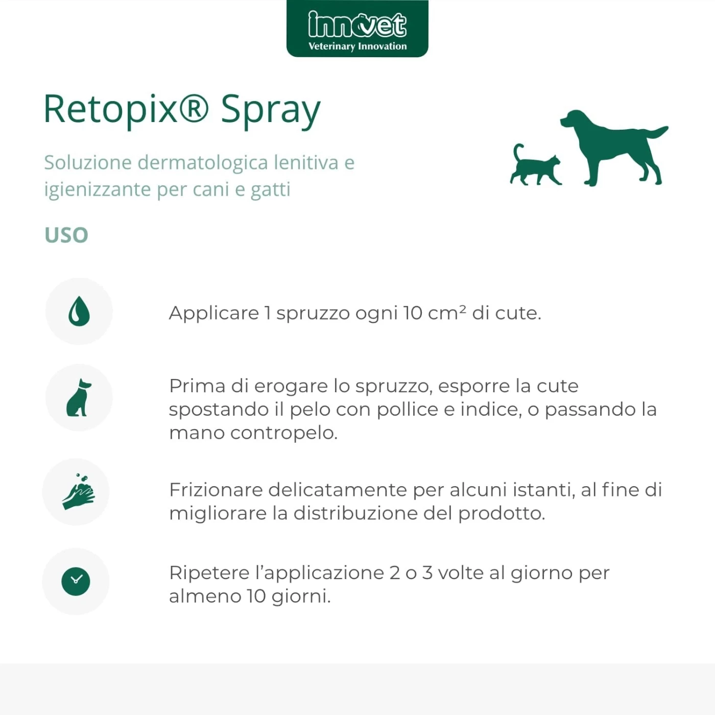 Retopix® Spray non è un farmaco veterinario, ma un prodotto dermatologico per cani e gatti.