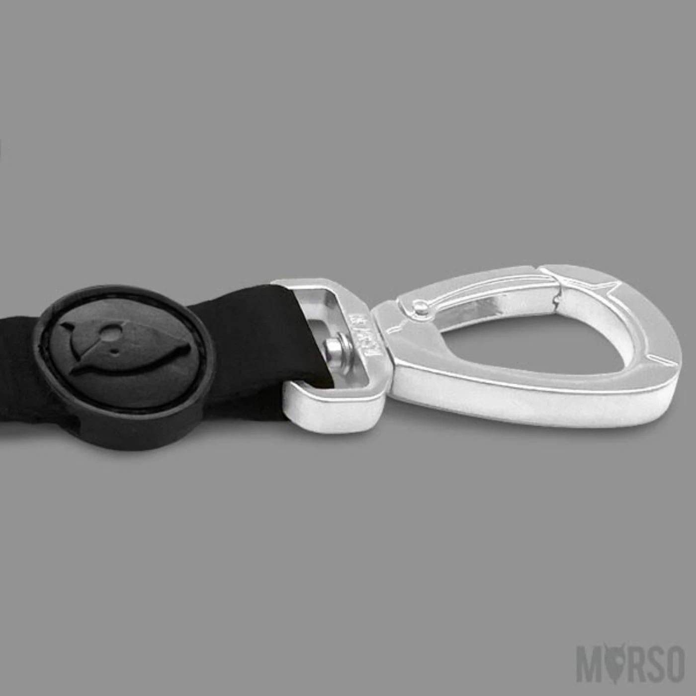 Il moschettone realizzato in zama con stampi pressofusi appositamente studiati e realizzati in Italia, resiste alle trazioni ed agli strappi più violenti. Per garantire la massima sicurezza è stata realizzata una guida tra il fermo e il gancio (molti moschettoni si aprono a causa della torsione che si produce attorno all’anello del collare/pettorina). Facilissimo da agganciare in caso di pericolo.